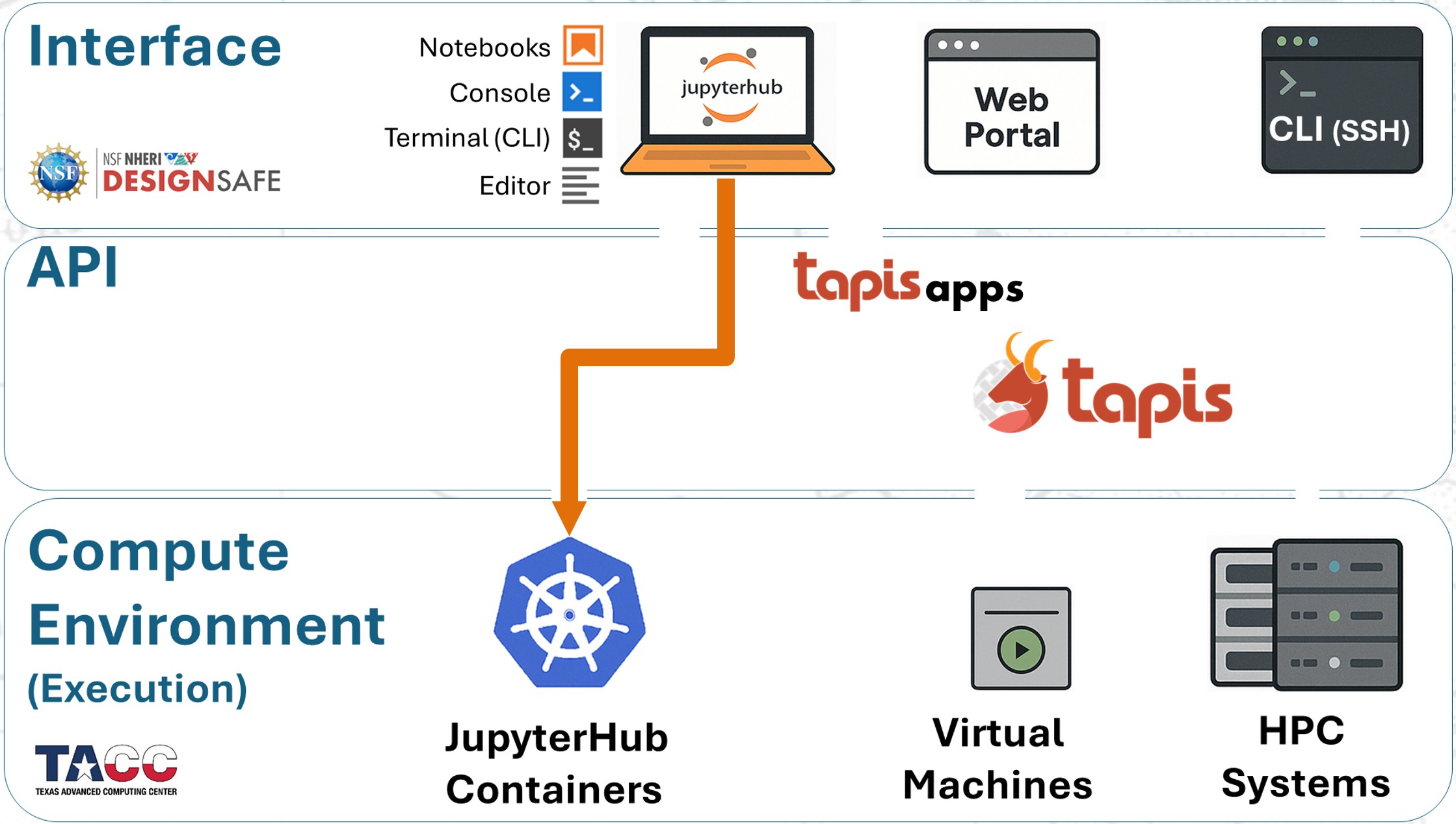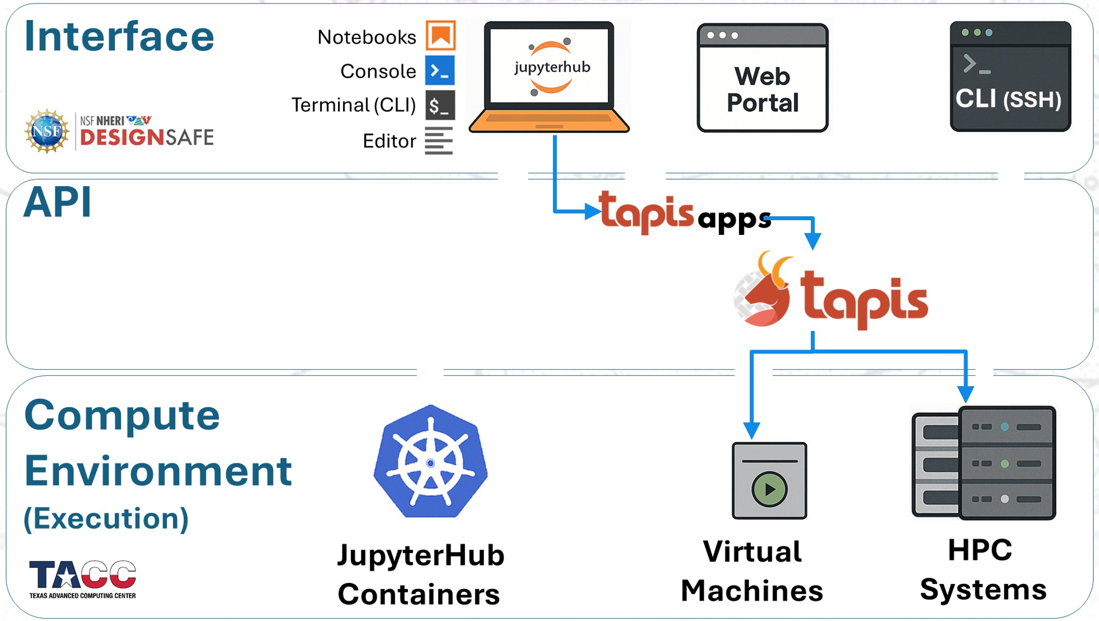 The diagram below illustrates how these workflows map onto the DesignSafe architecture: